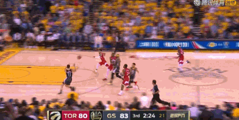 莱昂纳德其后又强行过掉汤普森,面对卢尼补防完成2+1,猛龙72-66取得6分领先优势。西亚卡姆其后发挥出色,但库里、伊戈达拉和汤普森(2个)先后投中4个三分,勇士83-79领先。